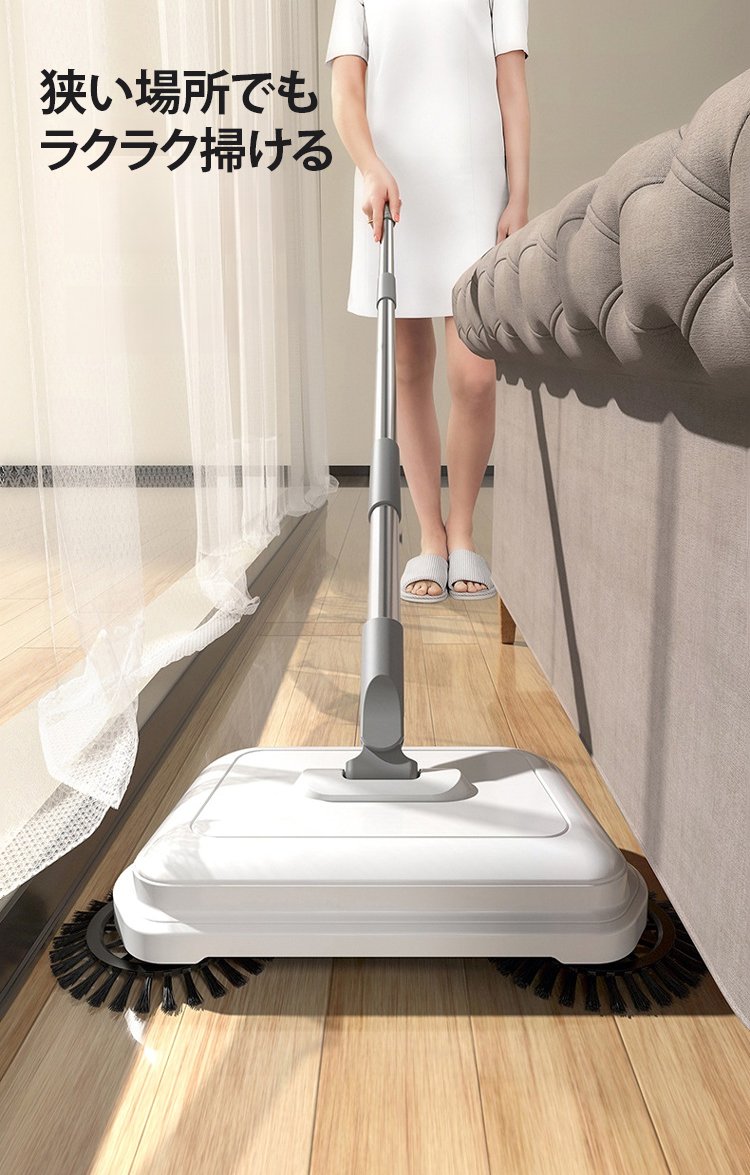 店舗の床を清掃する手押し式スイーパー